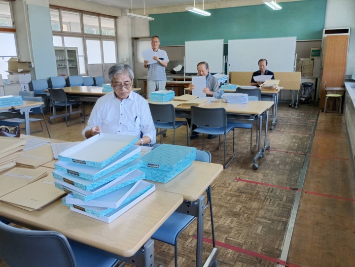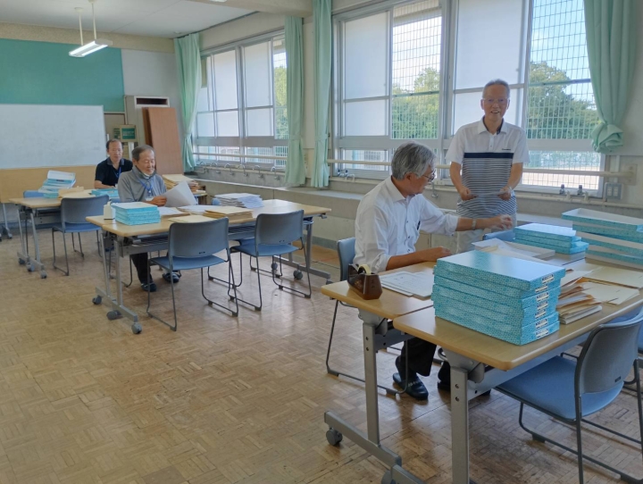 校長先生の方で、学校名と枚数を書いたラベルを貼った大封筒を、既に各テーブルに用意してくださっていたので、大変スムーズに作業することができました。