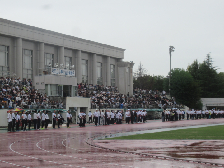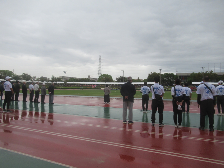 開会式もテント内で待機しながら行うなど、臨機応変の対応が続きました。しかし、役員やスタッフの方々が水を掃き出すなどグランド整備に尽力くださり、何とか無事に競技が進んでいきました。