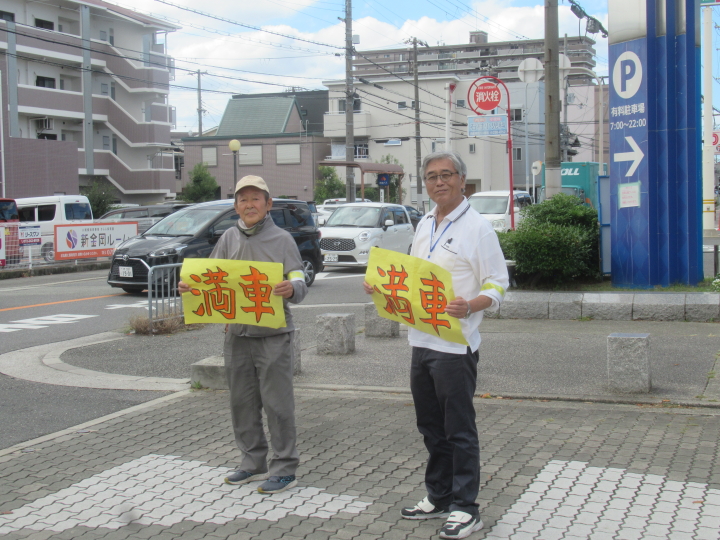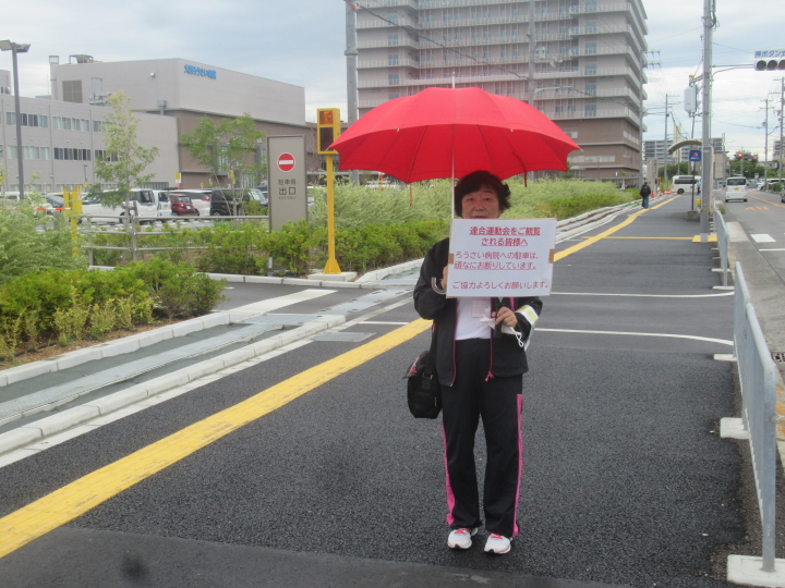 スタッフは、昨日と同様、(1)駐車場への誘導 (2)競技場の巡回 (3)野球場の巡回 (4)大阪メトロ横断歩道の安全指導を行いました。